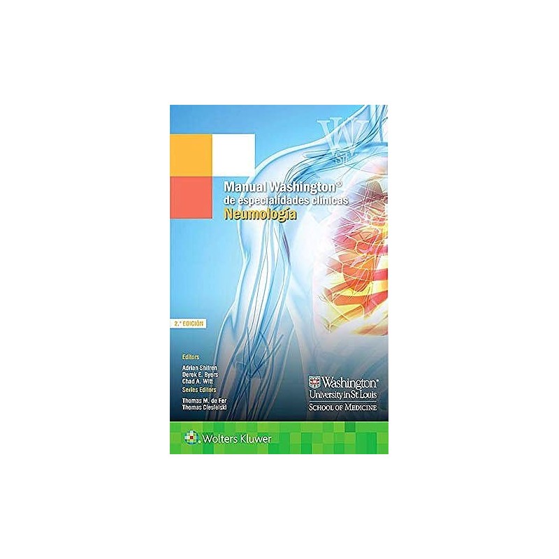 Conciso,portátil y fácil de usar, Manual Washington de especialidadesclínicas. Neumología proporciona acceso rápido a lainformación esencial necesaria para evaluar a los pacientes con neumopatías. La 2.ª edición ofreceel contenido más actualizado sobre el diagnóstico, la investigación y eltratamiento de las neumopatías agudas y crónicas más comunes,incluyendo la cobertura de tecnologías avanzadas y fármacos más recientes.Ideal para estudiantes de medicina en rotaciones y residentes, el manualtambién es útil como recurso de primera línea para internistas y otrosproveedores de atención primaria.