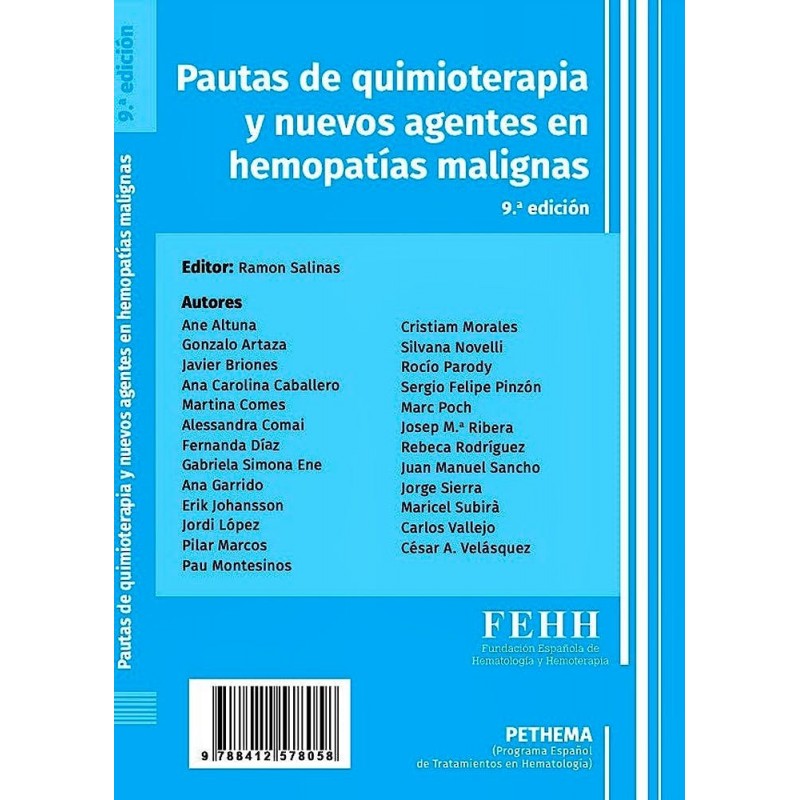 El manual se extiende también al ámbito del trasplante hematopoyético, con lainclusión de las pautas principales de acondicionamiento mieloablativoo de intensidad reducida.